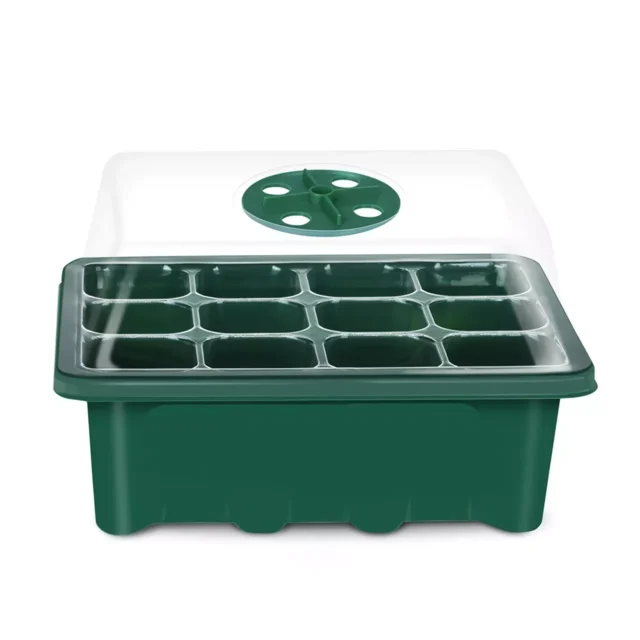 12-Cell Seedling Tray with Humidity Dome and Drainage Holes