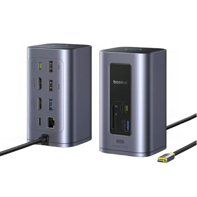 Power your productivity with the ultimate multitasking tool. This 12-in-1 USB-C Docking Station is designed for professionals, creatives, and remote workers who need high-performance connectivity and a seamless workflow. Whether you’re setting up a home office or on the go with a laptop, this compact hub transforms a single USB-C port into a complete workstation. Dual 4K HDMI outputs, lightning-fast data transfer, and robust power delivery come together in one sleek, space-saving device.