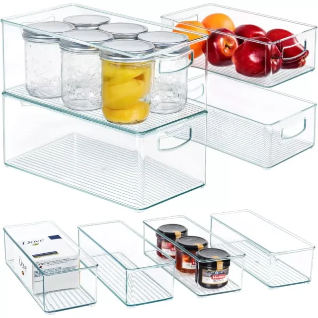 These bins are ideal for organizing your kitchen pantry, fridge, or freezer. Use them to store snacks, produce, condiments, or baking supplies. They’re also great for decluttering bathrooms, drawers, or office spaces.