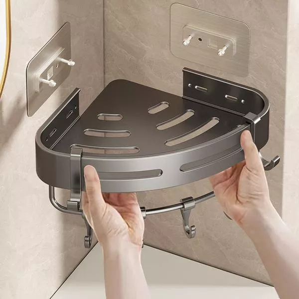 The sleek grey design of the Adhesive Bathroom Shampoo Holder complements any bathroom decor. Its dual-tier design provides ample storage space, allowing you to keep all your bathroom essentials within easy reach. The corner-mounted style maximizes your space, making it perfect for small bathrooms or showers where every inch counts.
