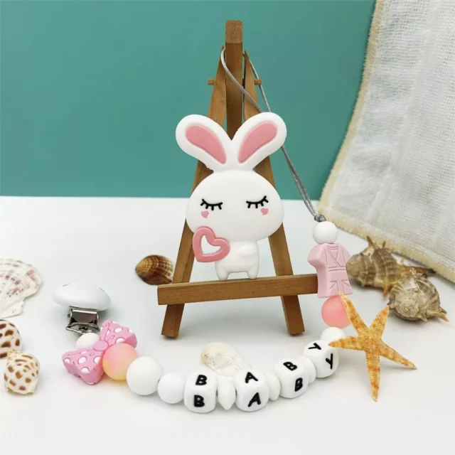Say goodbye to dropped and dirty pacifiers with this irresistible Baby Pacifier Clip featuring luminous silicone beads and a cute bunny pendant. Designed with love and care, this teether chain is both a functional accessory and an adorable keepsake. Crafted from high-quality, baby-safe silicone, this clip is soft, chewable, and free of BPA, latex, PVC, phthalates, and nitrosamines—so you can feel confident it’s safe for your little one.