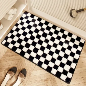 Black and White Grid Bathroom Absorbent Non-Slip Mat