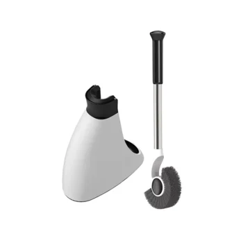 Home Toilet Brush Set with Stainless Steel Handle and Floor-Standing Holder