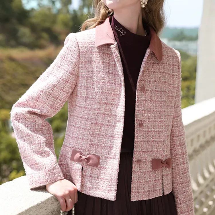 Vintage Plaid Tweed Short Jacket for Women – Autumn Winter Outerwear 2025