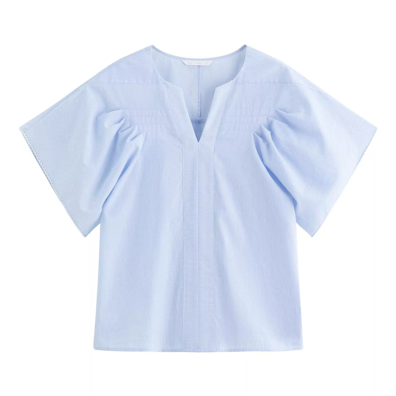 Women’s Summer Cotton Blouse with Textured Bell Sleeves – Relaxed Fit