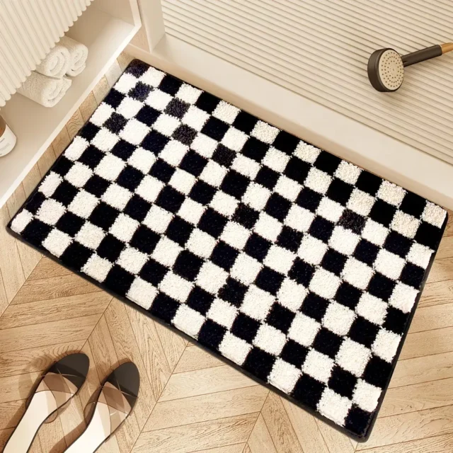 What sets our bathroom mat apart is its combination of style, safety, and functionality. The black and white grid pattern is not only visually appealing but also versatile, complementing any bathroom color scheme. The high absorbency and non-slip features ensure a safe and comfortable bathroom experience. Plus, the eco-friendly materials reflect our commitment to sustainability, making this mat a smart choice for your home.