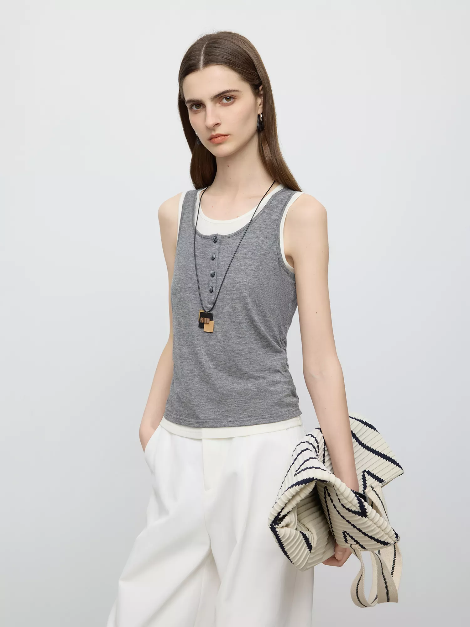Looking to refresh your summer wardrobe with something effortlessly chic? This two-piece knit tank is the piece you’ve been waiting for. Pair it with wide-leg trousers, your favorite jeans, or a sleek skirt—the possibilities are endless. Step into the season with confidence and comfort. Add this stunning tank top to your cart now and make it your signature summer piece.