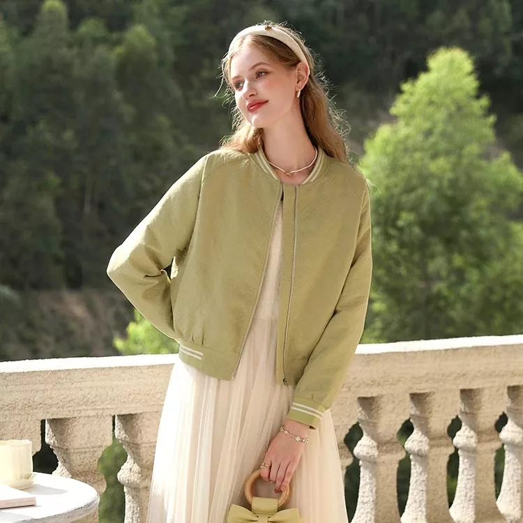 Women’s French Jacquard Patchwork Baseball Jacket – Street Style Chic