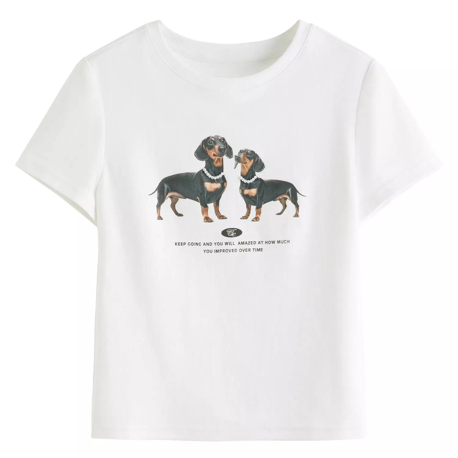 Retro Americana Hound Print Cotton Tee – Casual Summer Fit for Women