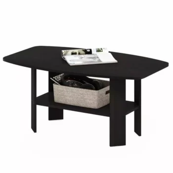 Elegant Black Coffee Table with Storage Shelf for Modern Living Room