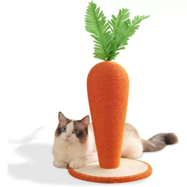 If your furniture could talk, it would thank you. Keep your feline friend active, healthy, and entertained with this delightful Carrot Cat Scratching Post—a fun, stylish, and functional addition to any cat-loving home.