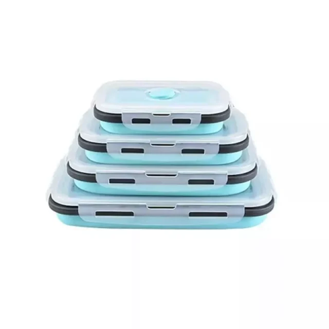 Eco-Friendly Silicone Collapsible Bento Box – 4 Piece Set, Microwavable & Freezer Safe