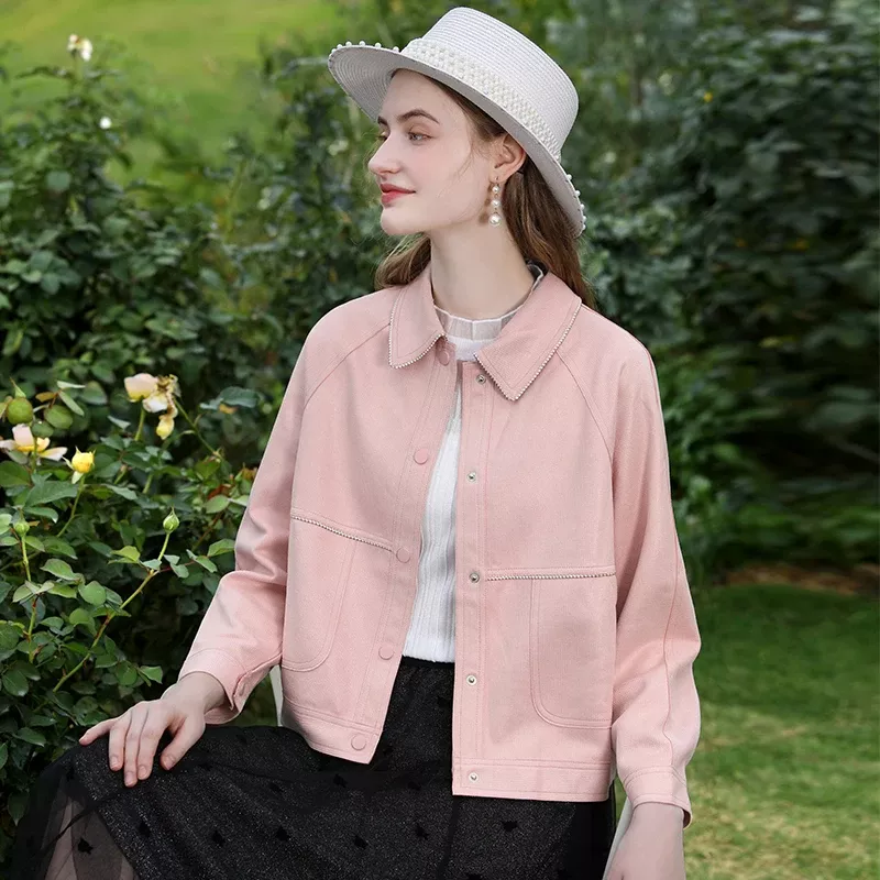 Elevate your spring wardrobe with the Elegant Pink Suede Lapel Short Jacket, a must-have piece for the modern woman who values both fashion and comfort. Designed for effortless style, this short suede jacket blends soft femininity with a trendy streetwear vibe, making it perfect for seasonal transitions. Its delicate pink hue, luxurious suede-like texture, and relaxed fit create a balanced look that’s equally suited for casual strolls or stylish outings.