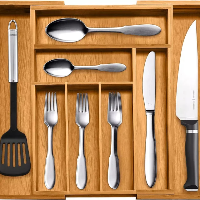 Although made with the kitchen in mind, this bamboo drawer organizer is also perfect for bathrooms, home offices, or craft rooms. Anytime you need to tidy up small items and make them easy to find, this organizer delivers. It’s the ideal choice for anyone who values both function and form in their home organization tools.