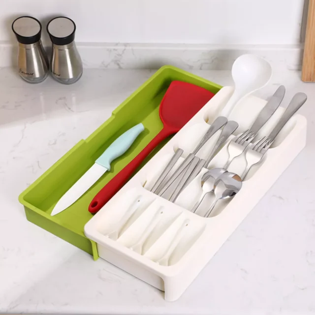 Tired of messy kitchen drawers? This expandable cutlery and utensils drawer organizer is the perfect solution to bring order and simplicity to your kitchen. Crafted from food-grade, BPA-free plastic, this tray is both durable and safe for everyday use. Its smart expandable design adjusts to fit your drawer space, giving you a customized storage solution that keeps everything in its place.