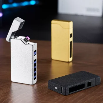 USB Rechargeable Double Arc Flameless Windproof Metal Lighter with LED Display