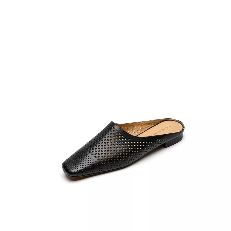 Made from high-quality cow leather, the upper features a stylish hollow-out pattern that enhances airflow while adding a touch of detail. The sheepskin insole offers gentle cushioning underfoot, keeping you supported during long walks or standing hours. With a low-profile 0.6-inch heel and a flexible TPR outsole, these mules provide reliable traction and a soft, natural step. Their round toe and slip-on construction make them as easy to wear as they are fashionable.