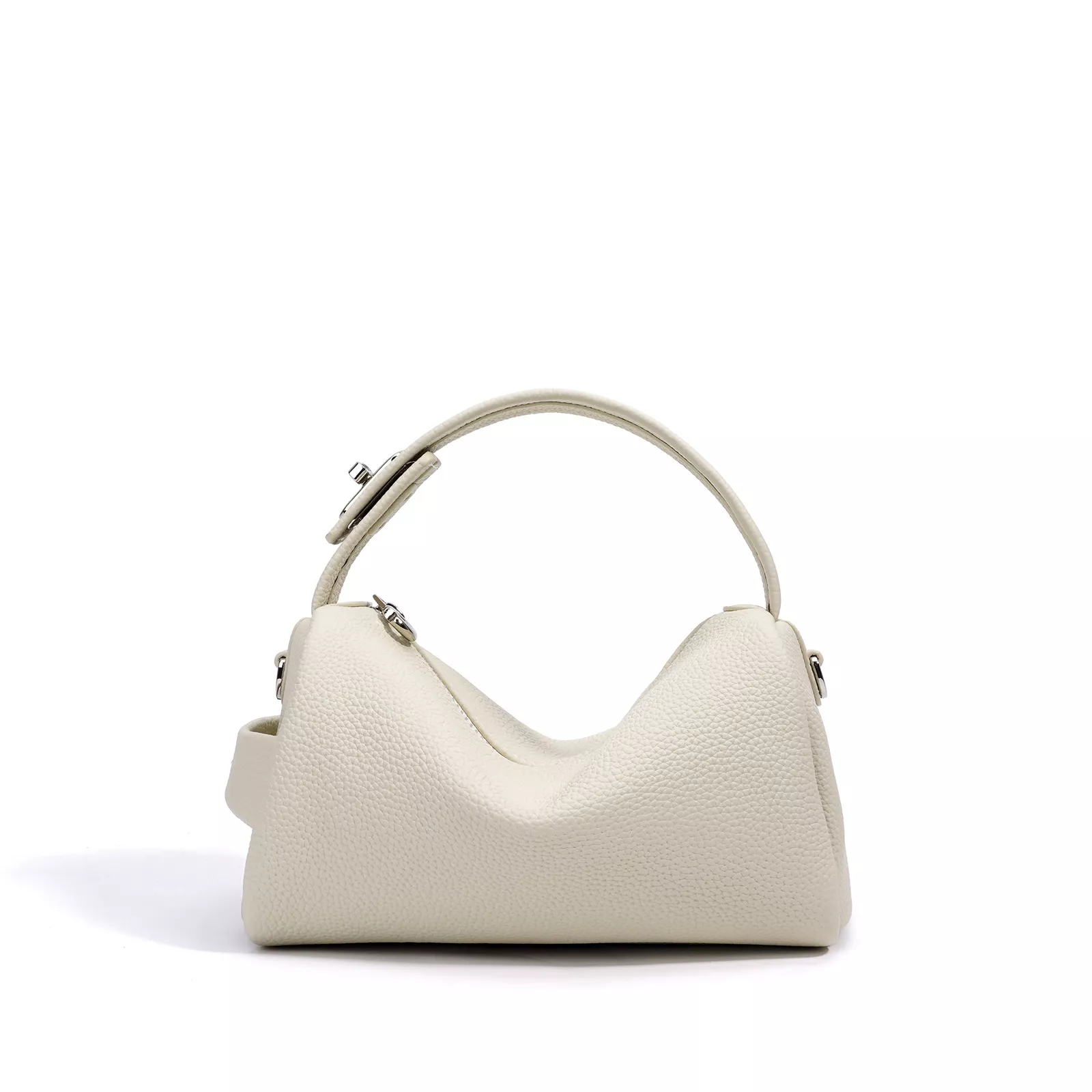This Boston-style tote has a modern slanted design and offers versatile carrying options: wear it over the shoulder for hands-free ease or carry it by hand for a more polished look. The clean lines and minimalist silhouette add a touch of understated elegance to any outfit, making it the ideal companion for every season and any occasion.