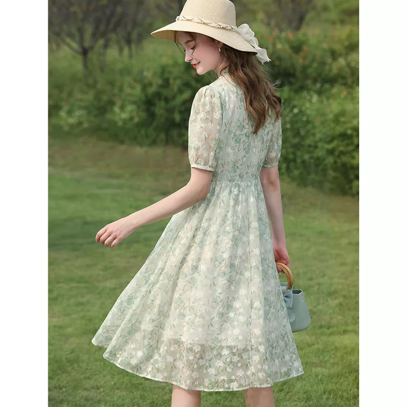 Capture the essence of warm, sunny days with this Green Floral Chiffon V-Neck Summer Dress. Designed for women who love timeless style with a fresh, breezy twist, this charming tea dress is perfect for strolling through gardens, sipping coffee at a café, or enjoying a summer gathering. The airy chiffon fabric and vintage-inspired floral print blend romantic charm with everyday wearability, making it a go-to piece for your 2024 wardrobe.