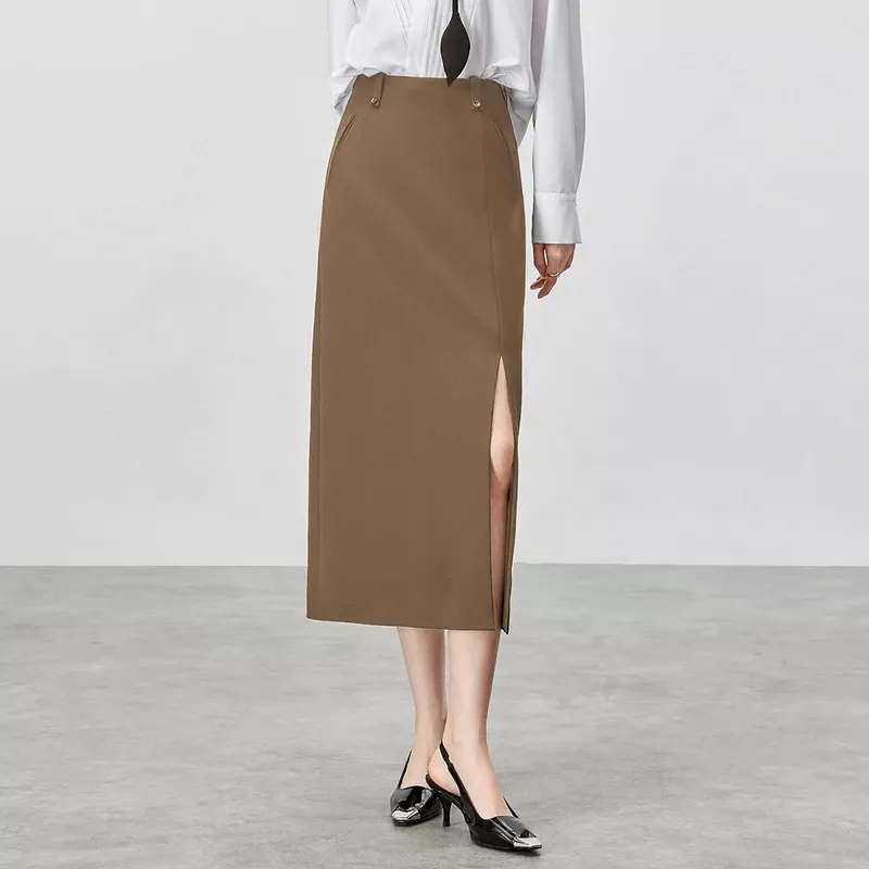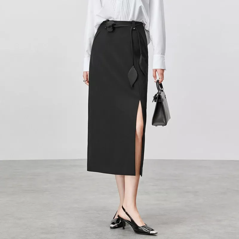 Refined, elegant, and designed to elevate your autumn-to-winter wardrobe — this high-waisted slit-hem straight skirt brings classic tailoring and timeless style together in one essential piece. Perfect for the polished professional, this mid-calf black skirt instantly upgrades your office outfit with clean lines and understated charm. Whether you’re walking into a meeting or heading to dinner after work, this versatile skirt delivers a confident, pulled-together look every time.