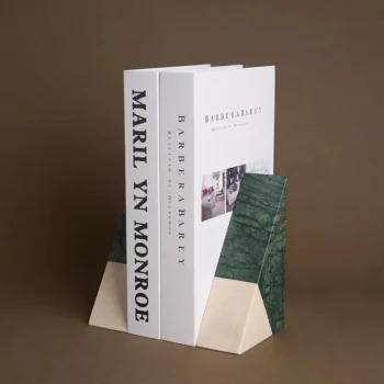 Natural Green Marble Bookends – Elegant Retro Travertine Book Stand