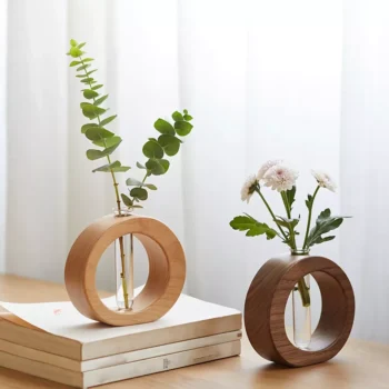 Solid Wood Mini Glass Vase for Living Room Decoration