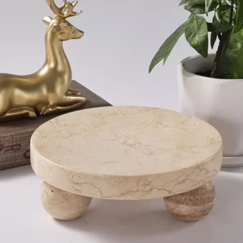 Travertine Sphere Ball Stand and Tray