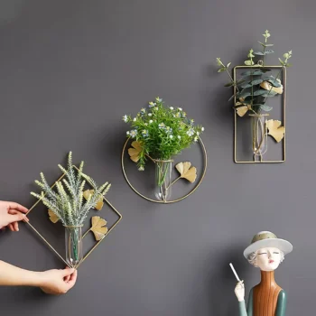Elegant Gold Iron Wall-Mounted Hydroponic Flower Pot
