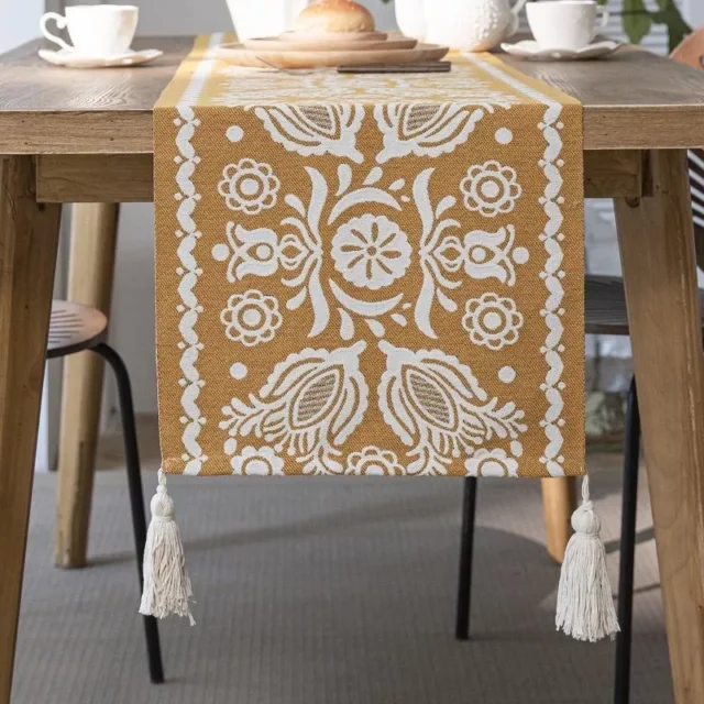 The Jacquard Contrasting Color Table Runner is crafted to provide both aesthetic appeal and functionality. Here are its key features: