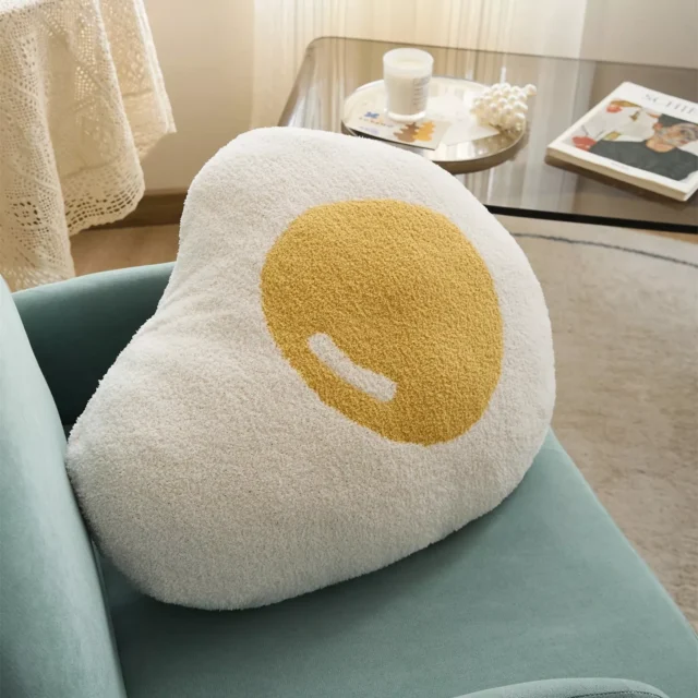 This throw pillow is crafted from high-quality microfiber fabric, ensuring a plush and soft feel that’s perfect for relaxation. The filling is made of cotton, providing excellent support whether you’re using it as a seat cushion, backrest, or hand rest. The charming poached egg pattern and fluffy, warm texture make it a standout piece that’s both functional and decorative.