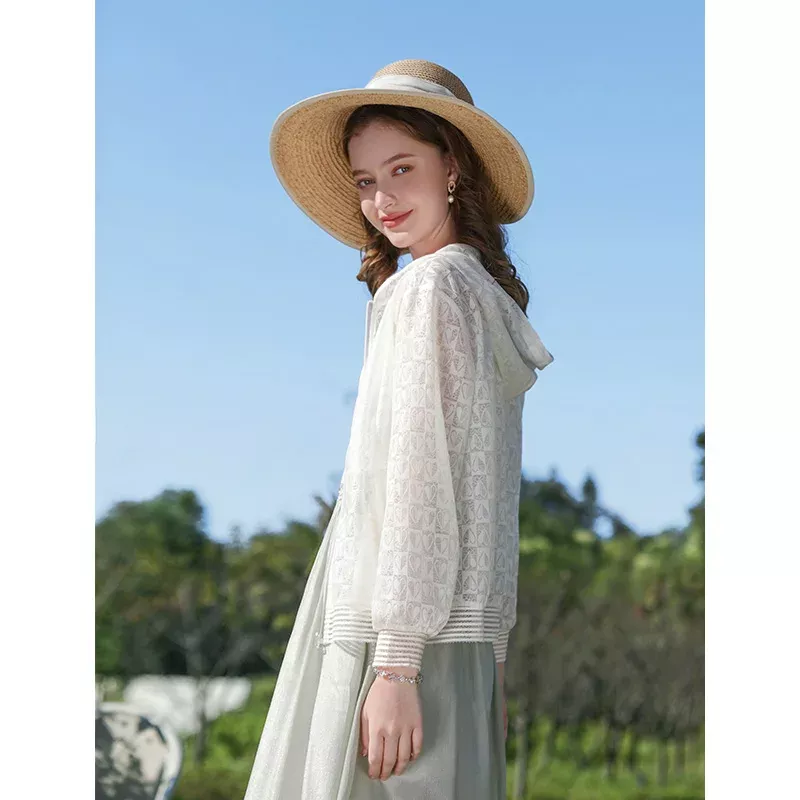 Stay effortlessly stylish all summer long with this elegant light lace hooded jacket, designed for women who love a soft, feminine touch in their wardrobe. Crafted for comfort and charm, this breathable summer cardigan blends delicate lace accents with practical design to give you the perfect warm-weather layer. Whether you’re heading out for a casual stroll, brunch with friends, or a breezy evening walk, this lightweight jacket adds a sweet finish to any outfit.