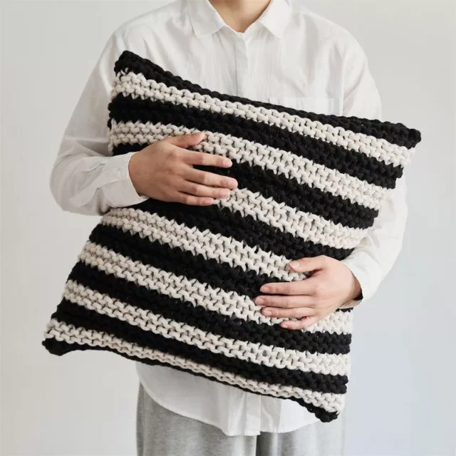 Whether you’re looking to spruce up your living room or add a cozy touch to your bedroom, this hand crochet chunky knit throw pillow is the perfect choice. Its neutral beige and black colors complement any decor style, from modern to traditional, making it a versatile addition to your home.