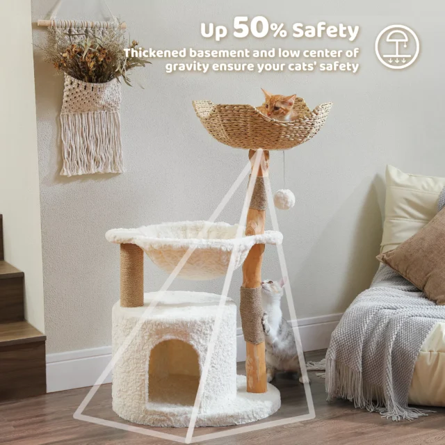 • Real Solid Wood Construction: Built from sturdy natural wood with sisal-wrapped trunks for safe scratching.