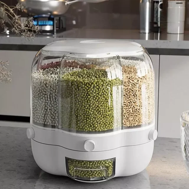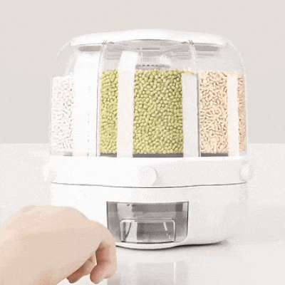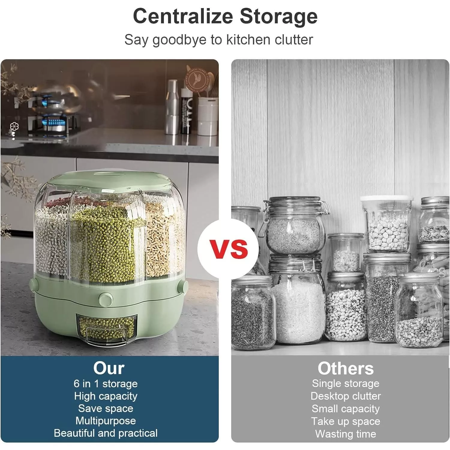 • 6-Grid Design: Conveniently store a variety of grains and dry foods.