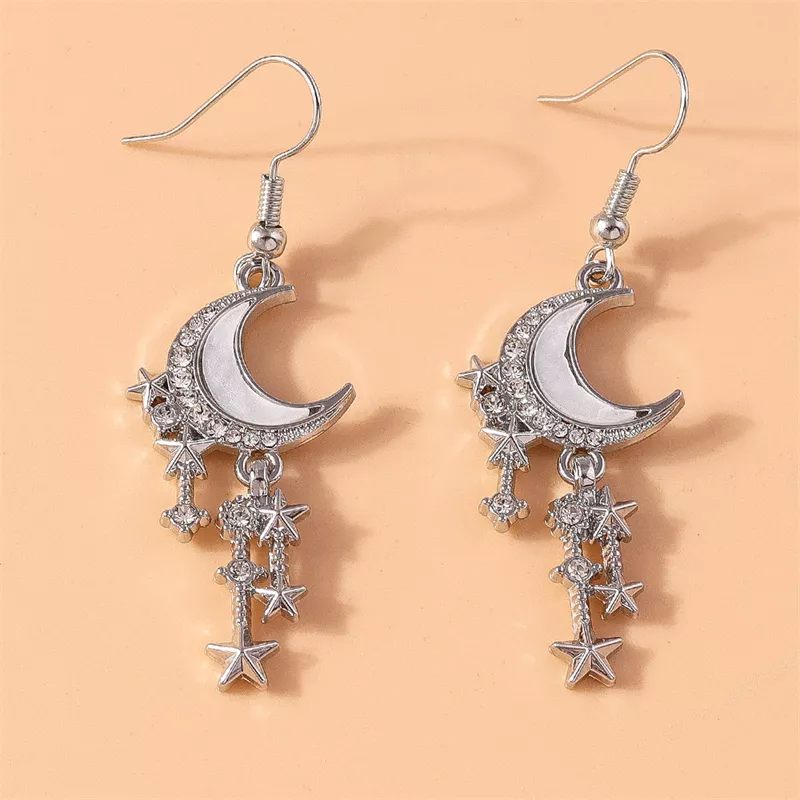 Turn heads and capture hearts with these stunning Moon and Star Drop Earrings, designed for women and girls who love to sparkle. Perfect for festive occasions or adding a dreamy touch to your everyday look, these earrings blend charm and romance with classic elegance. With their delicate moon and star design, they bring a little piece of the night sky down to Earth, making them a magical choice for anyone who believes in beauty, mystery, and a little bit of cosmic magic.