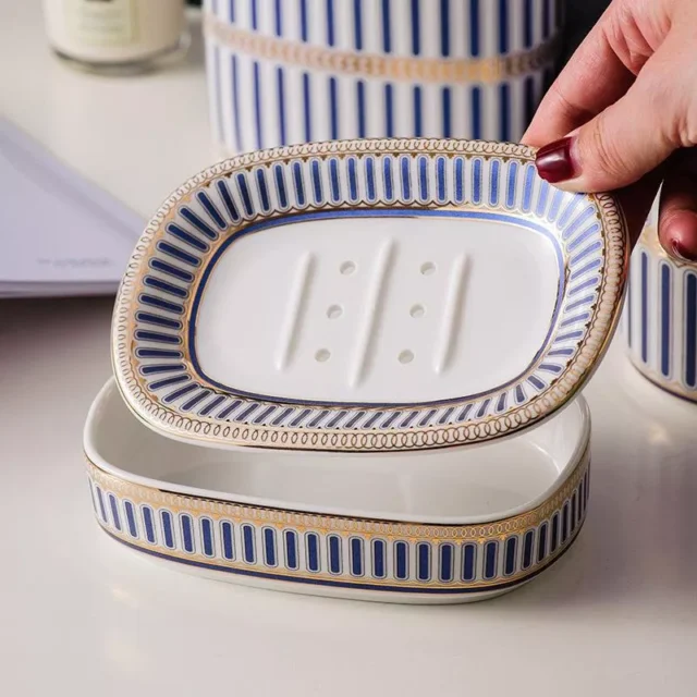 Nordic Gold Inlay Double Layer Ceramic Soap Holder