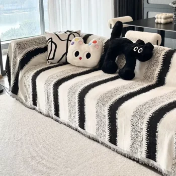 Striped Chenille Sofa Cover Anti-Scratch Throw Blanket