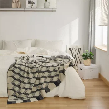 3D Cube Cotton Knitted Plaid Blanket – Delicate Nordic Bedspread