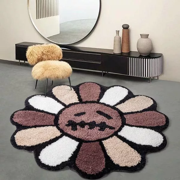 The unique flower art design with a smiling face in the center makes this rug a standout piece in any home. Its bright and cheerful colors are sure to lighten up any space, creating a welcoming and happy atmosphere. The rug’s thick, plush texture feels luxurious underfoot, making it a perfect addition to areas where you want to add a bit of coziness and warmth.