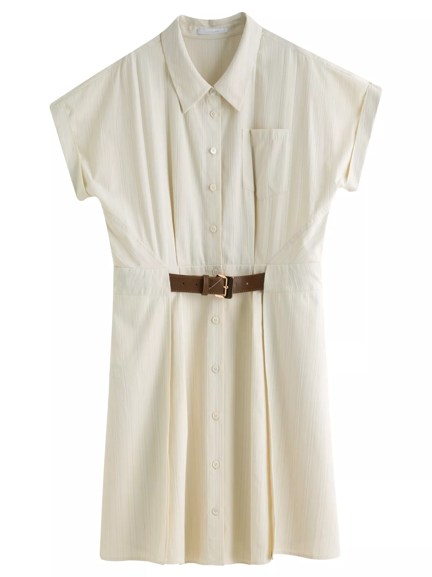 Meet your new summer wardrobe essential – this breathable linen-blend shirt dress combines polished tailoring with all-day comfort. The empire waist accentuates your smallest point while the A-line silhouette gracefully skims your curves. With its classic collar and midi length, this dress transitions seamlessly from brunch dates to office days with just a change of accessories.
