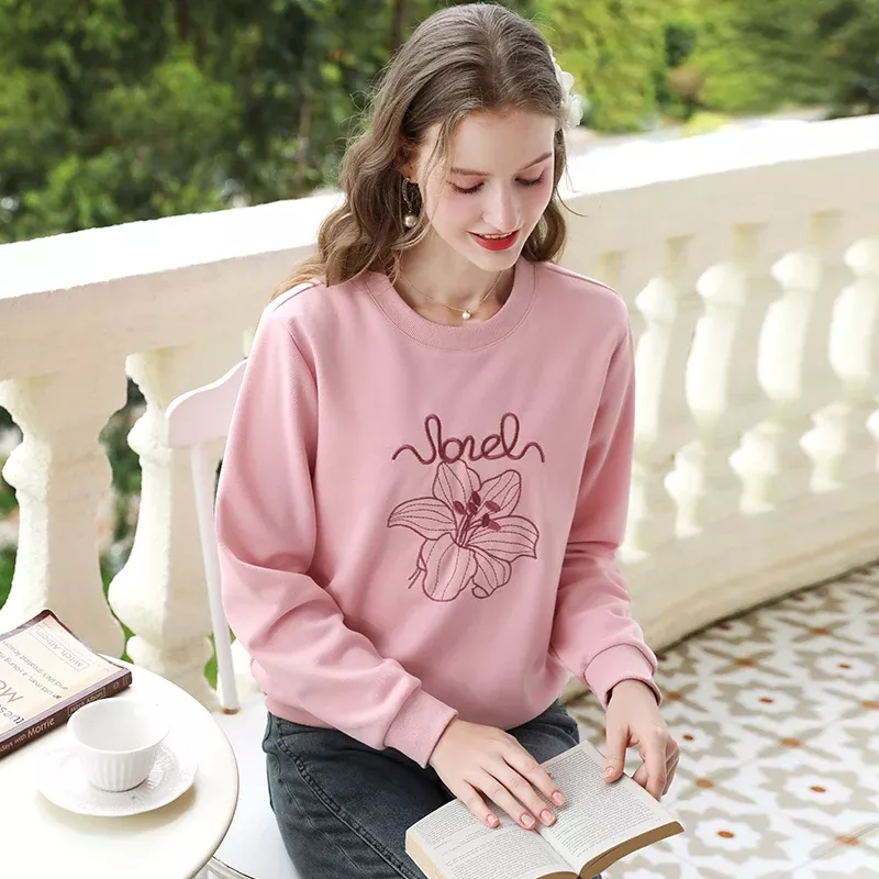 Crafted from a soft blend of cotton and polyester, it feels smooth on your skin without being clingy. The delicate embroidery on the front adds a playful, feminine touch—subtle enough for everyday wear but special enough to stand out. Its non-stretch fabric keeps the structure crisp, and the regular-length cut pairs perfectly with jeans, skirts, or joggers. The full-length sleeves and O-neck collar offer a clean, timeless look, while the absence of a hood keeps things simple and sophisticated.