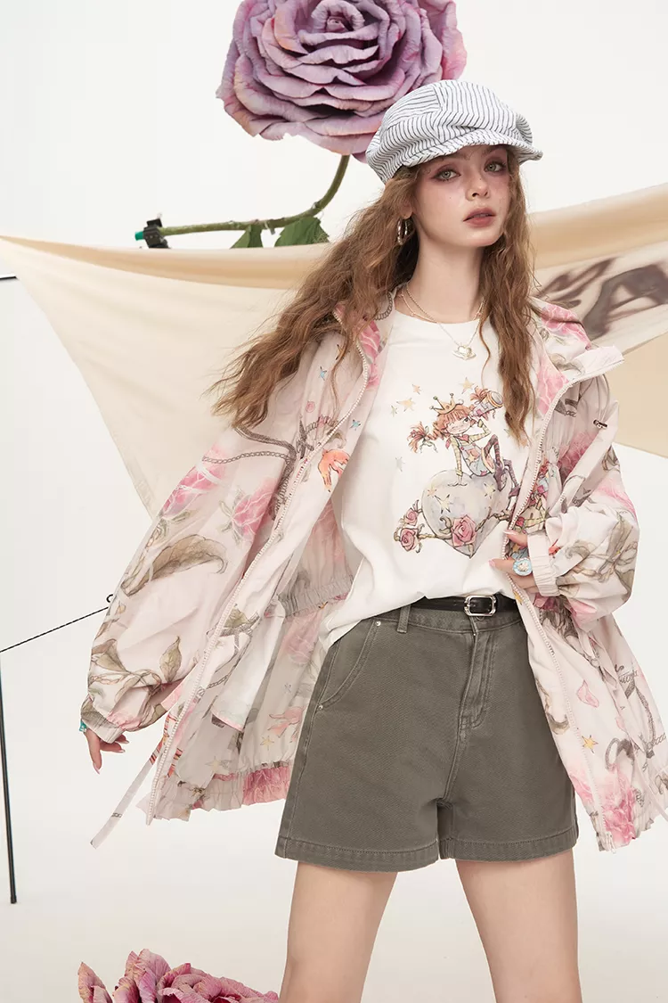 This jacket is best used during spring and summer, especially when you need a light layer that doesn’t overheat. What makes it special is its ability to balance femininity and function – combining a breezy, casual silhouette with a detailed floral pattern that feels anything but basic.