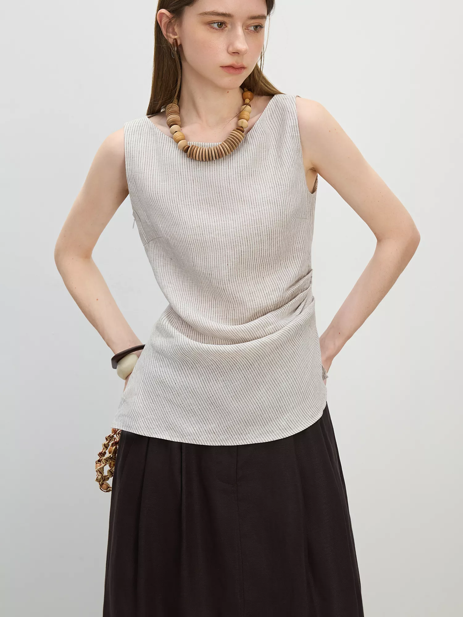 Women’s Sleeveless Striped Linen Casual Top – Slim Fit Summer Pullover