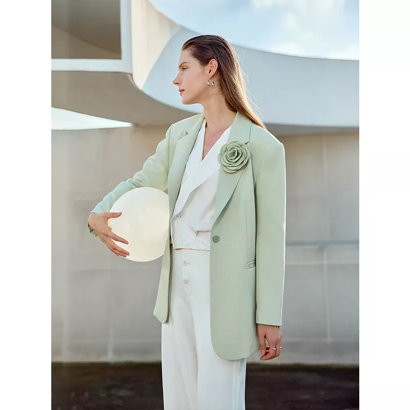 • Minimalist chic – Clean, solid color and notched lapels make it a timeless wardrobe piece.