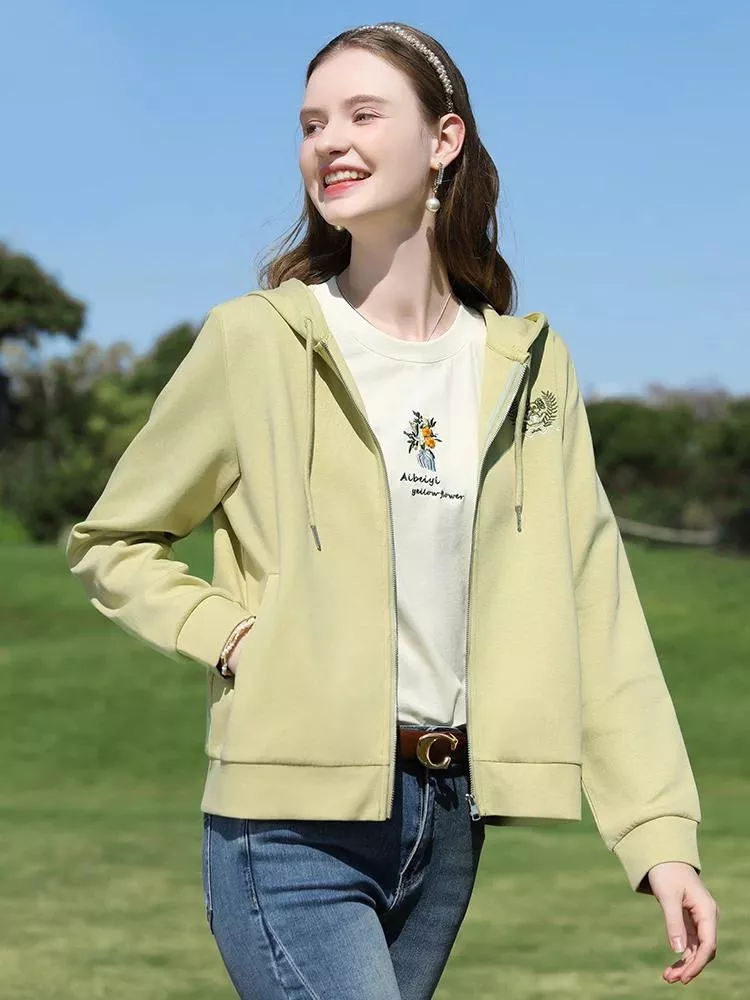 Step into the new season with fresh energy and vibrant charm. This yellow-green embroidered hooded sweatshirt jacket is the ultimate layering piece for spring and autumn. With its eye-catching hue, intricate embroidery details, and easy zip-up design, it’s the perfect mix of casual and stylish. Whether you’re out for a brisk walk, grabbing a coffee, or running errands, this versatile jacket keeps you looking put-together while feeling completely comfortable.
